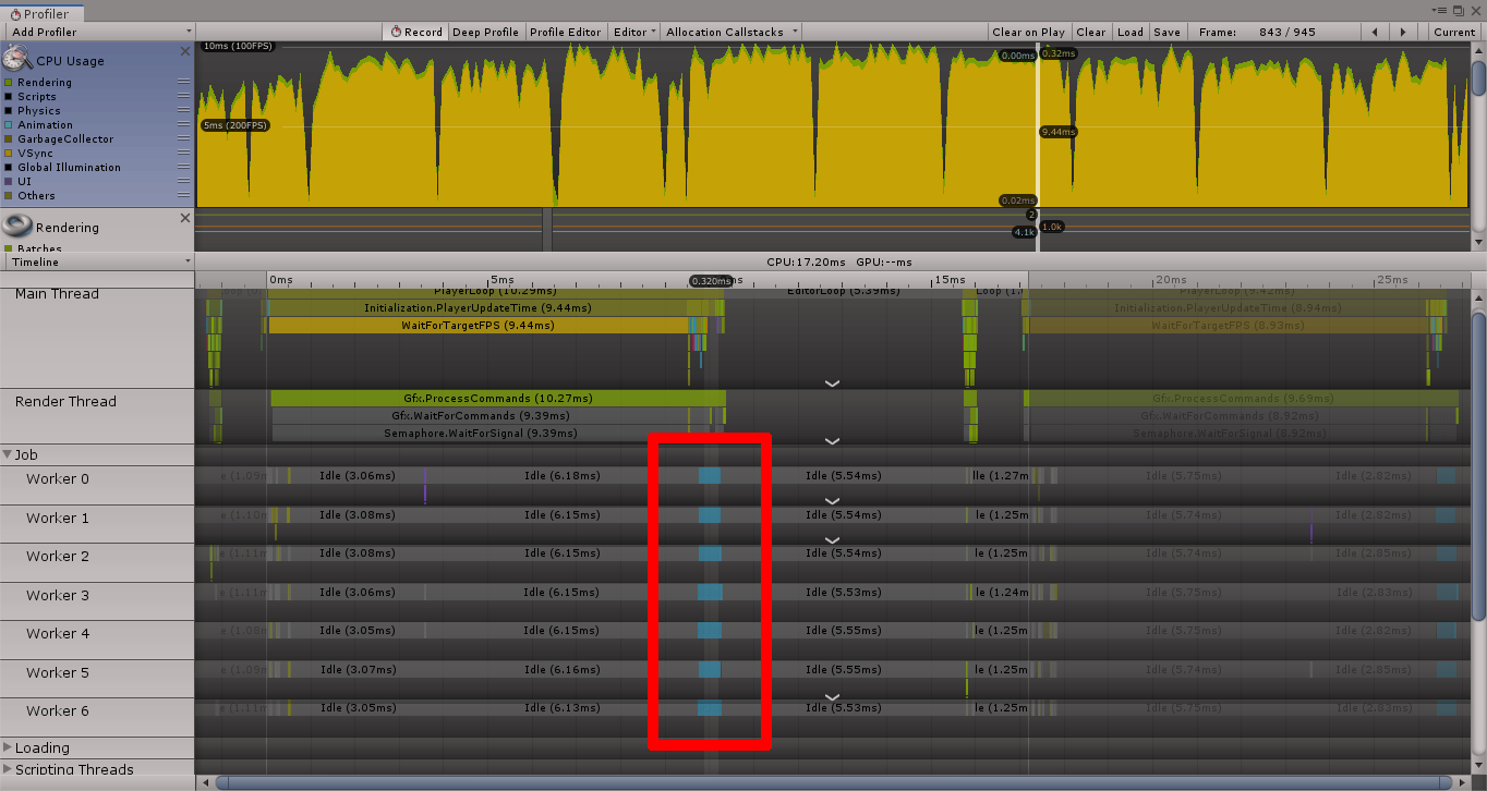 コアにジョブを任せるにも関わらず、Complete()が呼ばれるまでジョブが実行されず、実行したとしてもメインスレッドごと待機してしまいます。